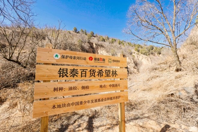 3月12日(植樹節(jié)),銀泰百貨攜手中國青少年發(fā)展基金會、螞蟻森林,在陜西省延安市洛川縣王家河村開展“保護母親河”植樹造林活動,計劃分三年種植一片希望林。