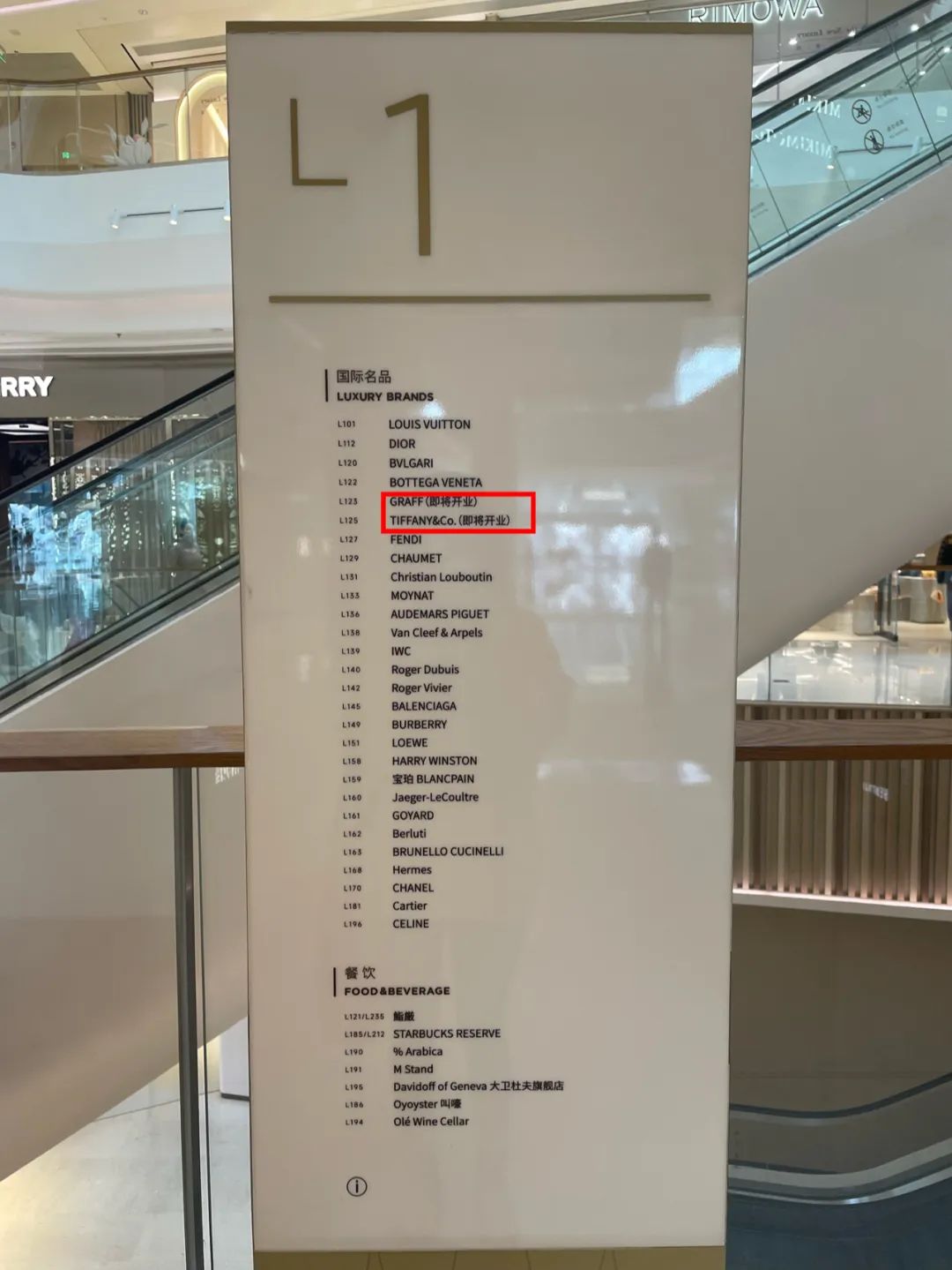 目前,TIFFANY、GRAFF都上了圍擋,二者緊挨著,顯示“即將開業(yè)”。