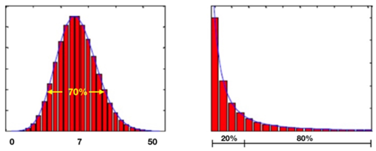 以上的比較分析都是依據(jù)線性思維的平均數(shù)據(jù)觀察。主要是因為我們?nèi)祟惔竽X的生理限制,我們只對平均數(shù)有感覺。就像微積分教學需要把曲線分割為許多小段的直線去近似以幫助理解的道理一樣。我們往往會很自然地以為平均代表大多數(shù),但是網(wǎng)絡思維無尺度網(wǎng)絡的研究和大量的事實已經(jīng)證明了我們生活的非線性世界都是二八分布的。無論是日本或國內(nèi)的購物中心,無論從市場或企業(yè)的角度審視,這些購物中心銷售都是二八分布的。所謂無尺度網(wǎng)絡定義的“無尺度”就是沒有平均代表值或平均值沒有意義的意思。無尺度網(wǎng)絡也徹底顛覆了過去我們學習的根據(jù)線性平均思維邏輯得出的所謂正態(tài)分布的誤導。