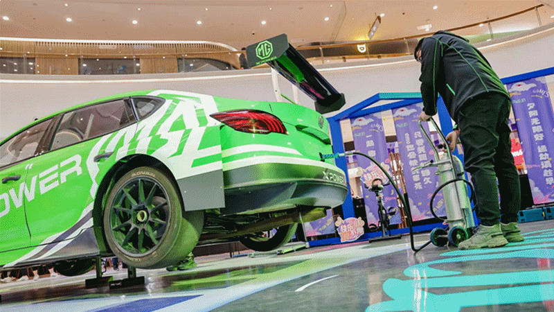 如上海愛琴海購物公園用異業(yè)聯(lián)動形式打造爆款體驗場景,聯(lián)合名爵MG落位的「MG限量款跑車快閃」,粉絲不僅可以近距離觀看10秒換胎神操作,還可以參與現(xiàn)場互動贏取MG精致周邊,讓機車愛好者在春日見證熱血沸騰時刻,體驗一秒入夏般的拉風(fēng)感。