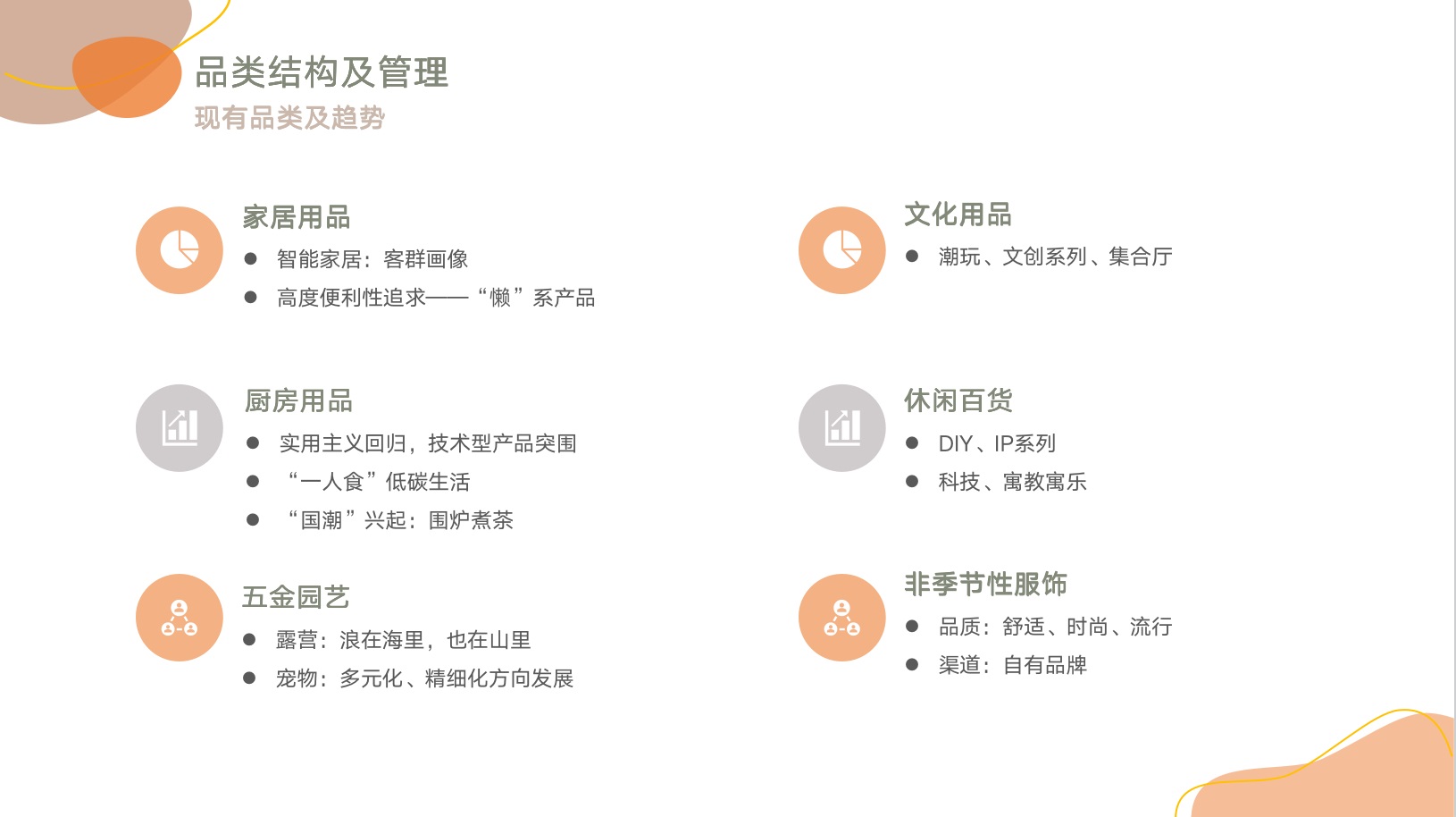 胖東來把品類管理結構分為6個大類:家居用品、廚房用品、五金園藝、文化用品、休閑百貨、非季節(jié)性服飾。