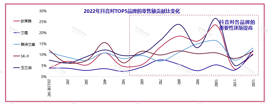 其次,從渠道端來看,抖音或將成為國際大牌進一步深耕的重要陣地。“國際品牌正在重構自身渠道的競爭力。從去年6月份開始,歐萊雅、蘭蔻在抖音的零售額已經有了明顯提升!绷_興表示,這代表國際品牌已經認識到了抖音的重要性,也在積極擴展此渠道為品牌帶來更多增量。