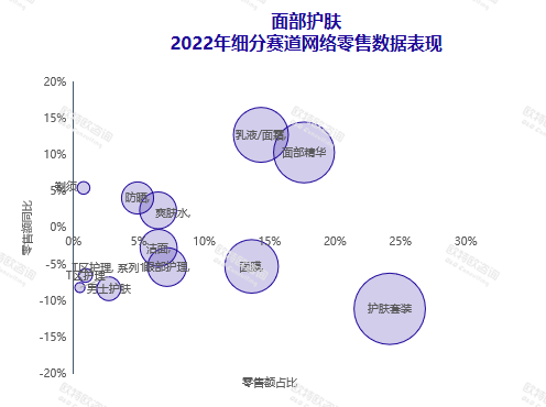 白皮書顯示,在面部護理產品中,增速最快的兩大細分類目為面部精華和乳液面霜。二者月度增速都較為平穩(wěn),11月銷售額最為亮眼,零售額占比均在24%左右。