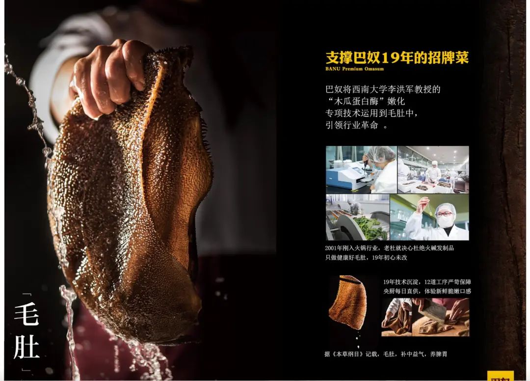 除了“富硒土豆”之外,巴奴的“高科技”毛肚也享受了不匹配的溢價(jià)。據(jù)巴奴官網(wǎng),該毛肚宣稱采用了西南大學(xué)教授的“木瓜蛋白酶”嫩化技術(shù),引領(lǐng)行業(yè)革命,但這已經(jīng)是19年前的事了。