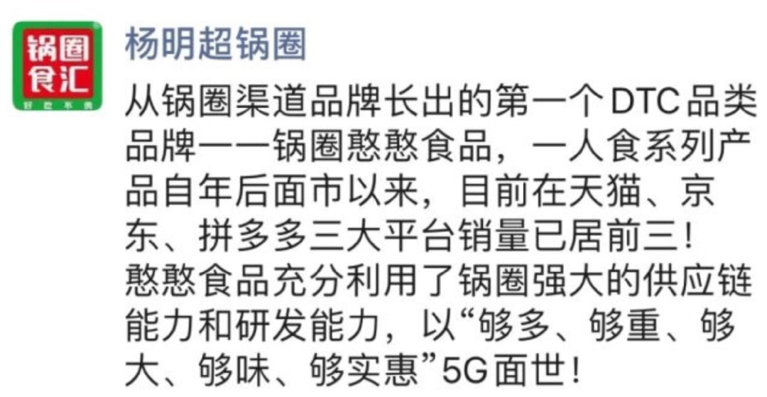 ▲圖:鍋圈食匯創(chuàng)始人楊明超朋友圈