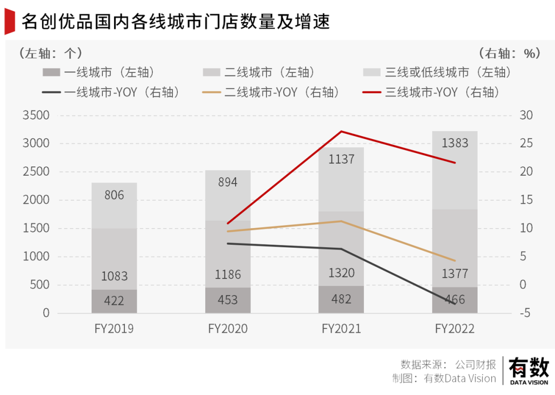 整個(gè)2022年,國(guó)內(nèi)經(jīng)歷了疫情的反復(fù)和年底的防控政策優(yōu)化,不可避免地對(duì)消費(fèi)環(huán)境產(chǎn)生了影響。另一方面,隨著名創(chuàng)優(yōu)品不停的開店,門店密度愈發(fā)接近飽和,也會(huì)面臨僧多粥少的零和博弈。