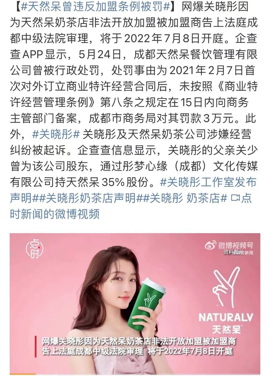 有媒體報(bào)道稱,成都天然呆餐飲管理有限公司多次被處罰,但當(dāng)有人想要關(guān)曉彤來為“翻車”買單時(shí),官方卻改口表示:“關(guān)曉彤女士從未參與過我司經(jīng)營管理工作,目前部分別有用心的人借此炒作,但我司堅(jiān)信法律的公平正義,相信法院做出的公正判決。對于該安檢給關(guān)曉彤女士造成的困擾,我司深表歉意!