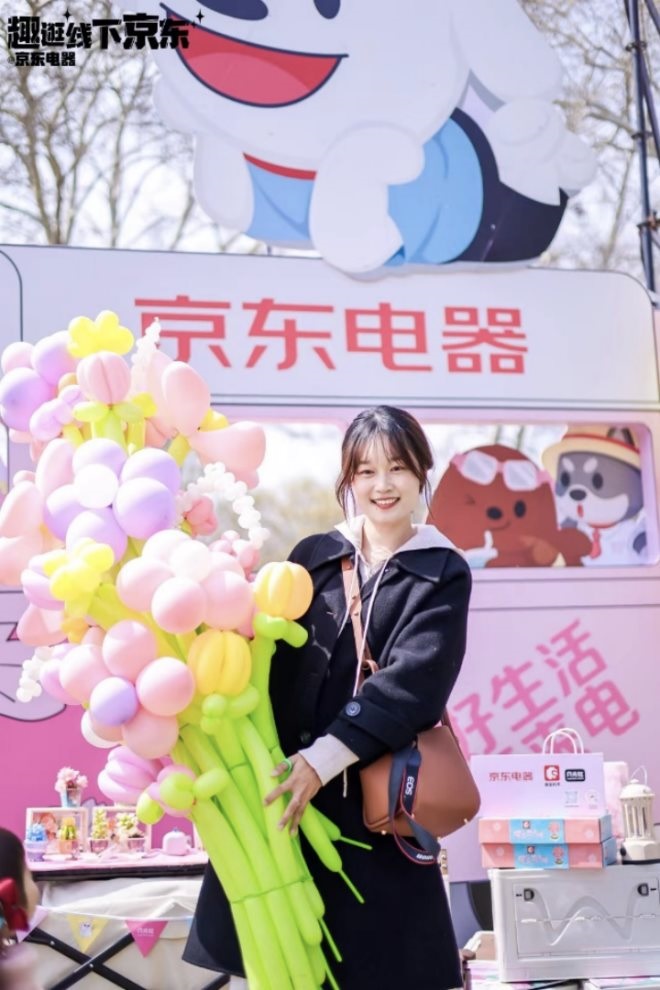 在還有生活節(jié)現(xiàn)場(chǎng),京東電器來(lái)電能量站采用春日露營(yíng)設(shè)計(jì),相當(dāng)吸睛。與櫻花相得益彰的粉色來(lái)電BUS上,京東吉祥物JOY慵懶、愜意的趴在車頂,享受春日暖陽(yáng)。小姐姐們懷抱一大束氣球花拍照打卡相當(dāng)出片!