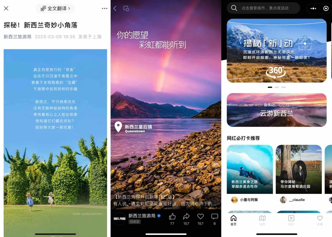 新西蘭旅游局公眾號(hào)、視頻號(hào)及小程序