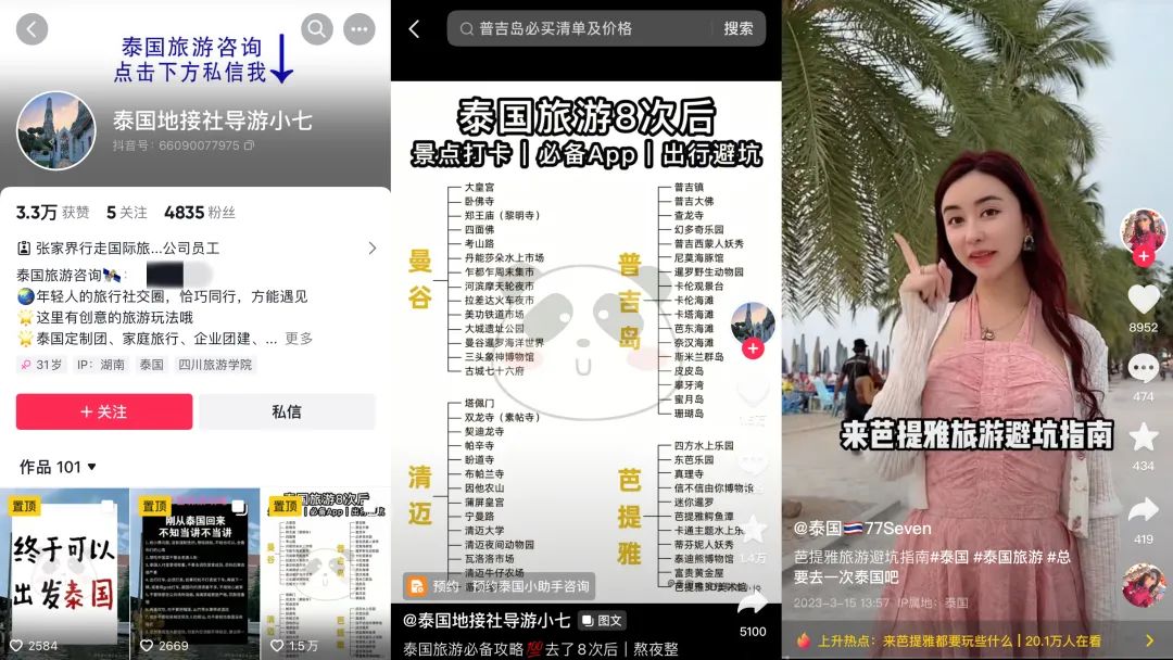 比如在抖音,導(dǎo)游個(gè)人會(huì)直接做短視頻內(nèi)容,主要以信息量較大的旅行攻略、旅行vlog為主。在內(nèi)容將感興趣的用戶(hù)帶到主頁(yè)后,就可以順勢(shì)讓用戶(hù)看到和添加在個(gè)人信息中寫(xiě)明的微信號(hào)。