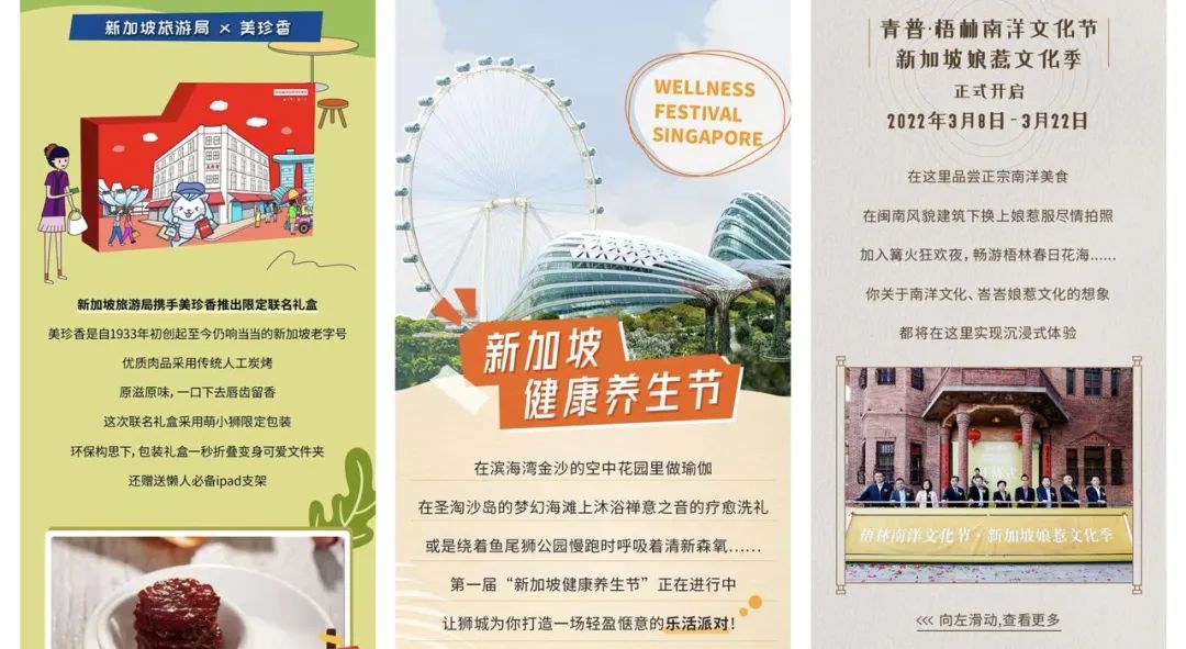 去年新加坡旅游局就已經(jīng)先后舉辦了健康養(yǎng)生節(jié)、娘惹文化季、美食節(jié)等多場(chǎng)活動(dòng)。健康養(yǎng)生節(jié)時(shí),會(huì)和Keep展開(kāi)合作,上線(xiàn)互動(dòng)小游戲,傳遞新加坡的康養(yǎng)體驗(yàn);美食節(jié)時(shí),與新加坡肉干老字號(hào)品牌美珍香一同推出了聯(lián)名限量禮盒,和成都博舍酒店、廣州本土茶飲品牌丘大叔展開(kāi)合作;在春季的露營(yíng)活動(dòng)中,新加坡當(dāng)?shù)豄OL則是在新加坡東海岸公園、白沙公園等特色露營(yíng)點(diǎn)打卡開(kāi)啟了直播,帶用戶(hù)“云露營(yíng)”。