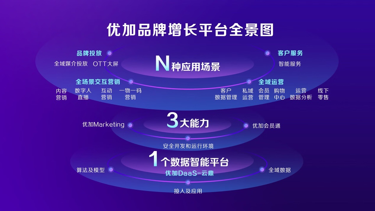 會(huì)上,京東云錨定DaaS新賽道,重磅發(fā)布開放的數(shù)智平臺(tái)優(yōu)加,以及1+3+N全景圖。該平臺(tái)定位于全場(chǎng)景、全渠道、一體化,不僅融合京東大數(shù)據(jù)能力、 智能算法、系統(tǒng)軟件工具,更面向品牌增長(zhǎng)。