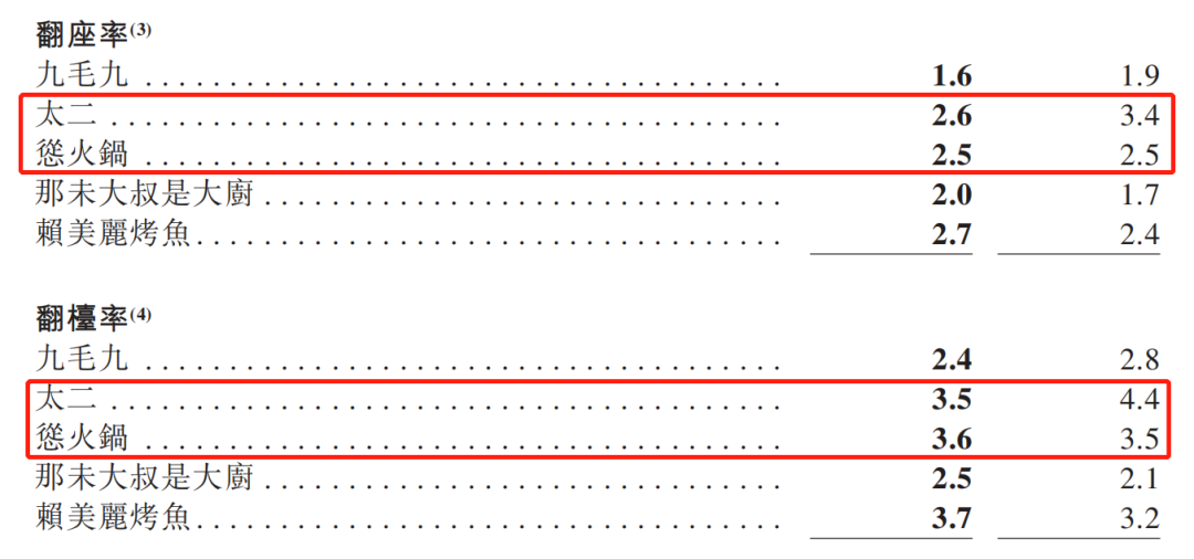 但慫火鍋沒有太大變化,從翻臺率上看,還從3.5增長到了3.6。