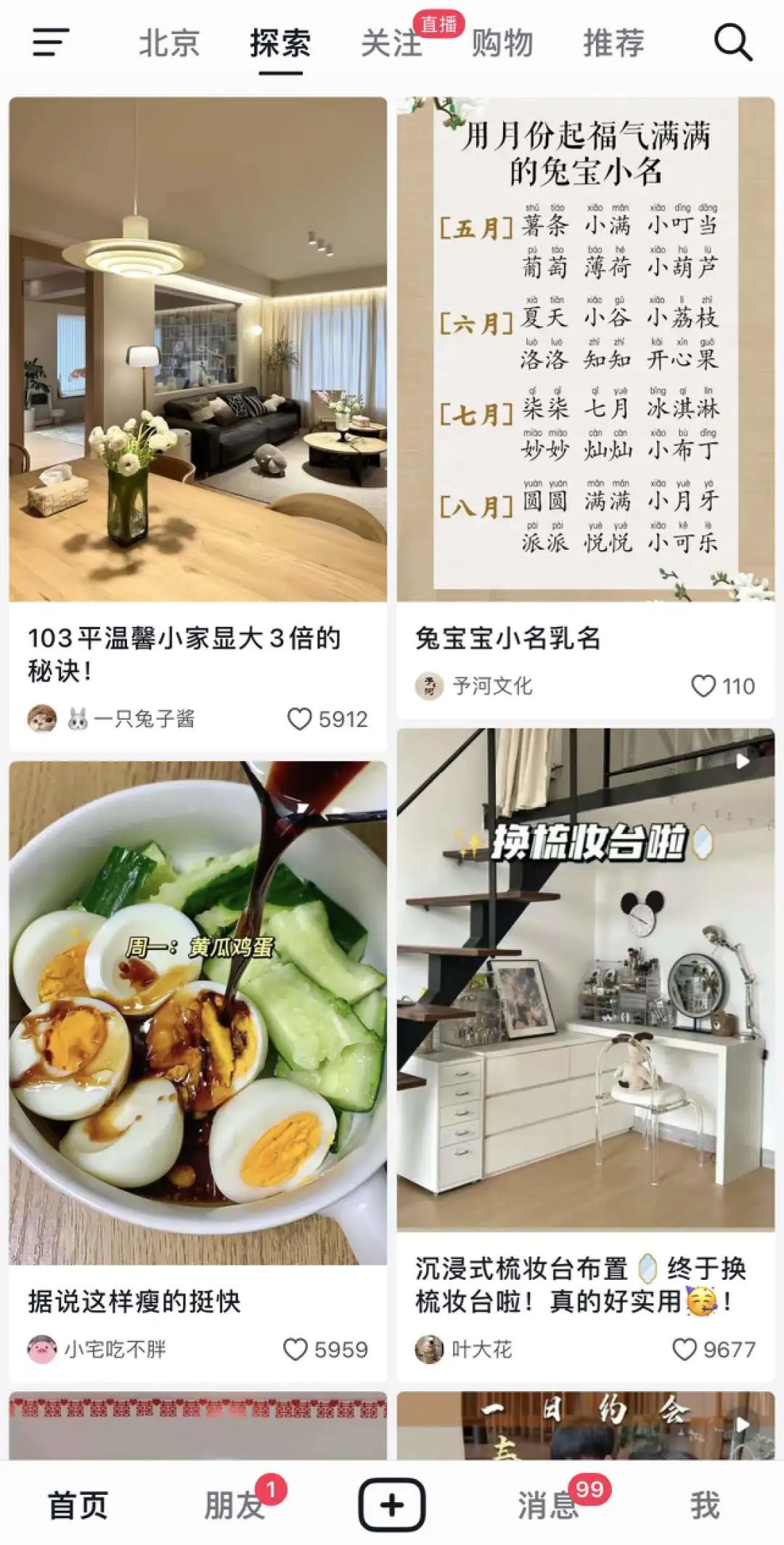 打開抖音APP,首頁的導航欄有一個“探索”入口,雙列交互,界面功能酷似小紅書。開菠蘿財經(jīng)瀏覽后發(fā)現(xiàn),該版塊里圖文、圖集居多,偶有視頻形式,內(nèi)容以穿搭、美妝、美食、旅行為主。