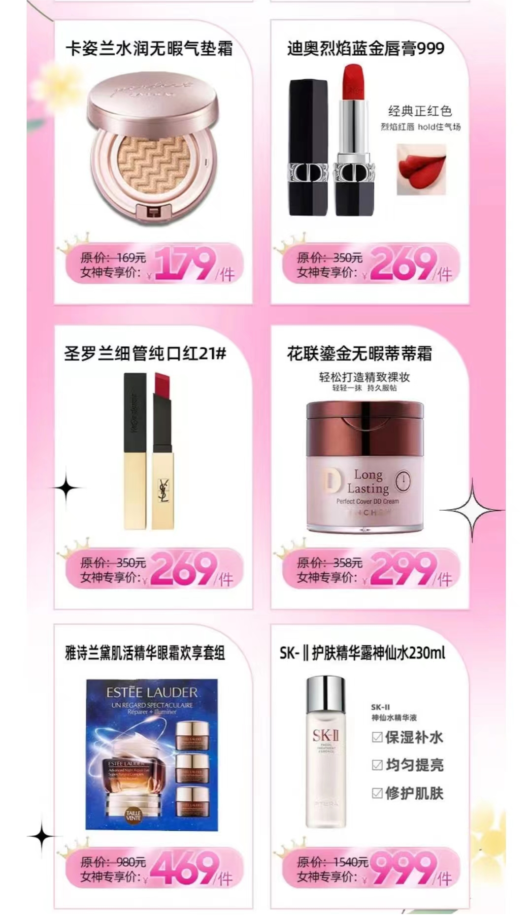 以山西普麗生鴻源美妝連鎖店為例,本次3·8節(jié)活動中推出全場護膚品牌第二件3.8折的福利,覆蓋丸美、自然堂、伊貝詩、溫碧泉、百雀羚等品牌。還延續(xù)了2月做的“抗衰節(jié)”購卡引流福利。此外,官方店鋪售價48.9元的半畝花田潔面慕斯活動價格為29.9元;官方店鋪售價103元的貝德瑪卸妝水活動價格為59元,并推出了迪奧999口紅等進口爆品的秒殺活動。