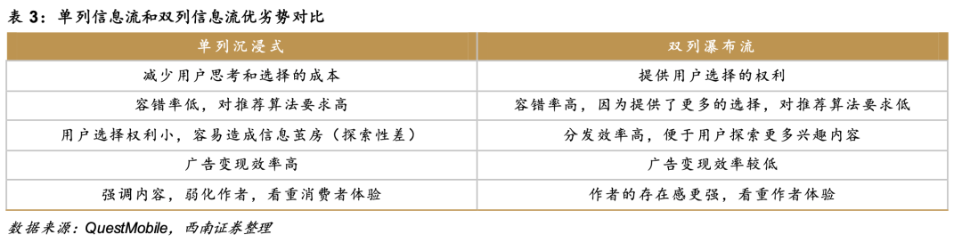 單、雙列不同的設(shè)計(jì)背后,體現(xiàn)的不僅僅是產(chǎn)品理念的差異,還取決于內(nèi)容生態(tài),會(huì)直接影響到內(nèi)容的分發(fā)機(jī)制,進(jìn)而影響變現(xiàn)端的表現(xiàn)。