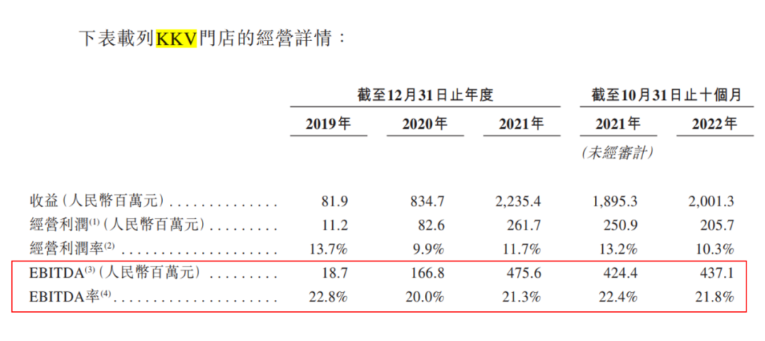 保持20%以上的EBITDA率確保KKV單店盈利——這是KK集團(tuán)的壓艙石。截至2022年前十月,KKV取得收入20億元、EBITDA達(dá)4.37億元、經(jīng)營(yíng)利潤(rùn)2億的成績(jī),這也使得KK集團(tuán)有底氣繼續(xù)開設(shè)新的KKV門店,同時(shí)還能不斷孵化第二曲線THE COLORIST調(diào)色師、第三曲線X11。