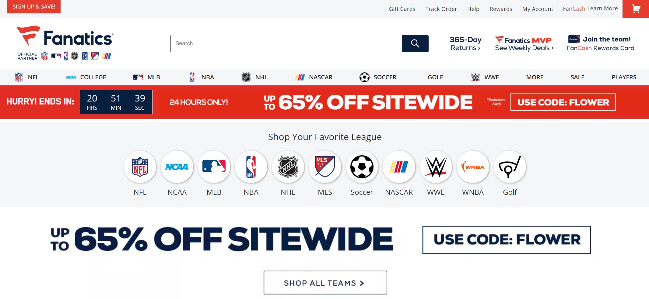 Fanatics線上購(gòu)物網(wǎng)站。圖源:Fanatics官網(wǎng)