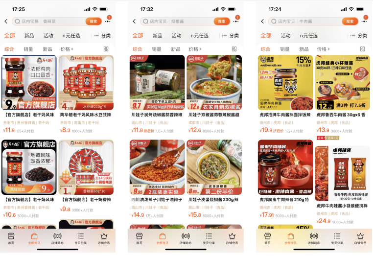 老干媽天貓旗艦店,川娃子天貓旗艦店,虎邦天貓旗艦店