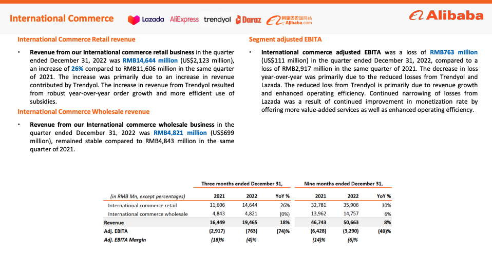 阿里巴巴國際商業(yè)板塊表現(xiàn) 圖片來源:阿里巴巴集團(tuán)財報