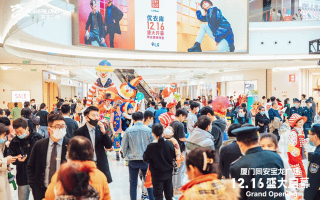 以12月16日開業(yè)的廈門同安寶龍廣場為例,作為廈門同安首座超10萬平方米的“城市級購物中心”,廈門同安寶龍廣場國際名品+城市首進品牌近90家,不僅有福建首家上影國際影城、部落酷玩,同安唯一優(yōu)衣庫及配有泳池的躍動力堡健身等極具實力的主次力店,同時還有新能源車矩陣、全品類餐飲陣容及黃金珠寶薈萃一堂,形成一個強大的體驗式業(yè)態(tài)集群。開業(yè)當天,客流量達到23萬人次,出租率98%,當日銷售額超2300萬。