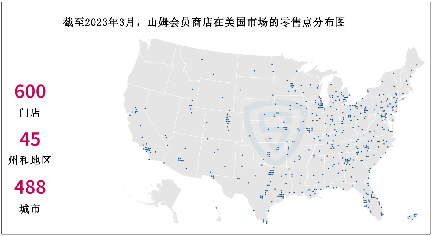 山姆會員商店美國門店分布圖。圖源:ScrapeHero
