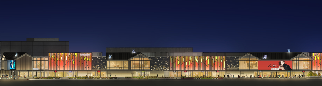 以“小鹿”作為項(xiàng)目的形象IP,與燈光景觀相結(jié)合,統(tǒng)一感的設(shè)計(jì)形式,將原本龐大而單一的體量打散,消解成一個(gè)個(gè)不同的場(chǎng)景,賦予沿街商戶更獨(dú)立、個(gè)性化的空間形象及未來(lái)入駐品牌更多的交互可能性。