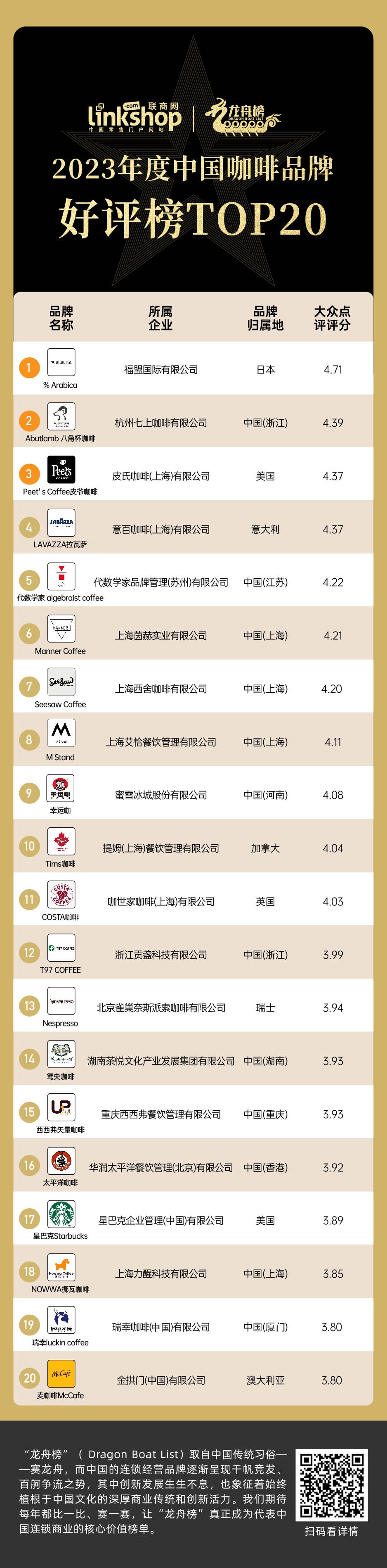 2023年度中國(guó)咖啡連鎖品牌TOP20