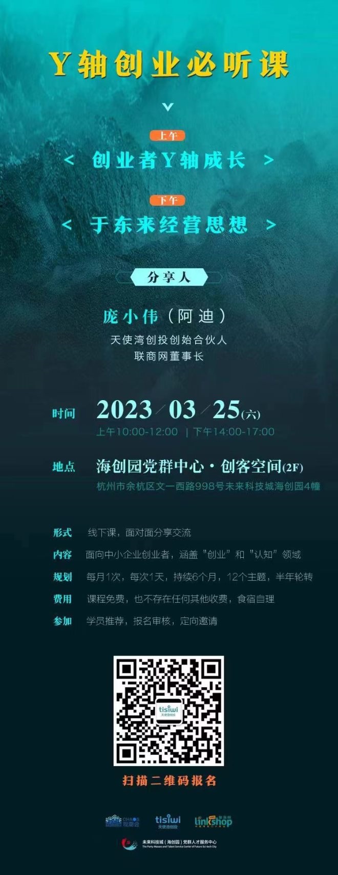 6、Y軸創(chuàng)業(yè)成長課第二次課開課,面向會員免費開放。3月25日,由聯(lián)商網(wǎng)董事長龐小偉主講的《2023年Y軸創(chuàng)業(yè)成長公益分享課》第二期課程如期舉辦,本次課堂主題分為“創(chuàng)業(yè)者Y軸成長”和“于東來經(jīng)營思想”兩部分。該公益課課程全年共設(shè)12次不同主題課,每月一次,每次一天,課程內(nèi)容主要涵蓋“創(chuàng)業(yè)”和“認(rèn)知”兩個領(lǐng)域。聯(lián)商個人VIP會員均享有免費參加的權(quán)益。