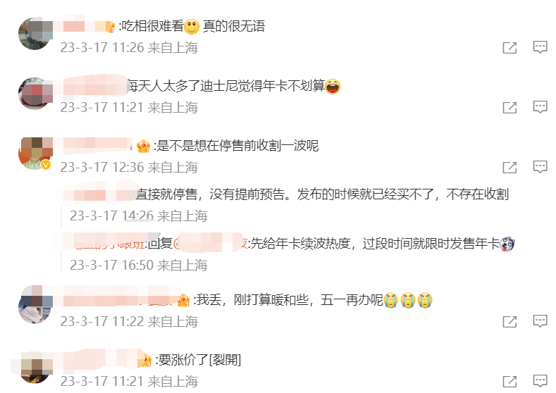 微博中網(wǎng)友對上海迪士尼年卡停售的評論