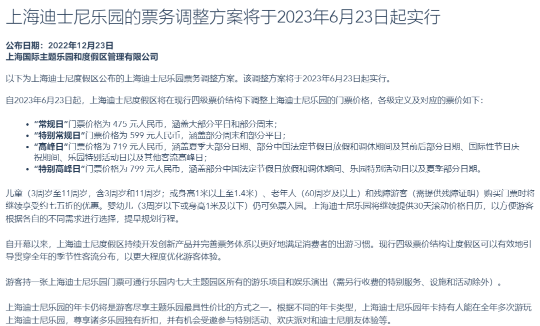 3月17日,上海迪士尼樂園宣布,為了更好地管理客流和保障樂園內(nèi)游客體驗,自2023年3月17日上午8:00起,上海迪士尼度假區(qū)將在各銷售渠道暫停發(fā)售上海迪士尼樂園年卡。去年12月,上海迪士尼就曾發(fā)布消息稱,自2023年6月23日起,樂園的四級門票將全部開始漲價,不同檔位較現(xiàn)行票價上漲30元到60元不等。