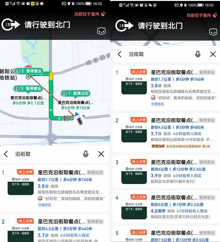 星巴克沿街取服務(wù),則與高德地圖共同推出,主要依托自身高密度的門店網(wǎng)絡(luò)、運營優(yōu)勢,以及高德地圖精確至分鐘級的路線規(guī)劃、實時交通路況等核心能力。這一業(yè)務(wù)在北京上海測試了半年左右才正式上線,在實際操作中,面對一線城市擁堵且變換莫測的道路情況,這項服務(wù)對于技術(shù)精準(zhǔn)度、門店的運營管理要求都很高。