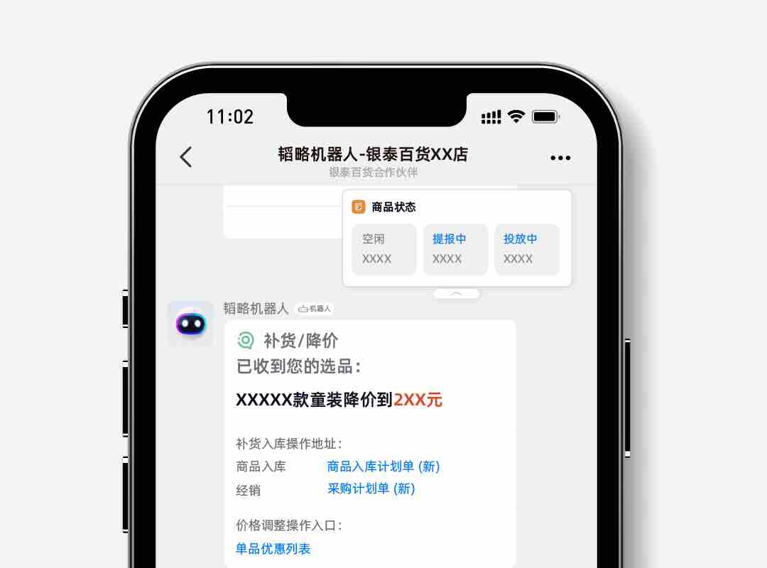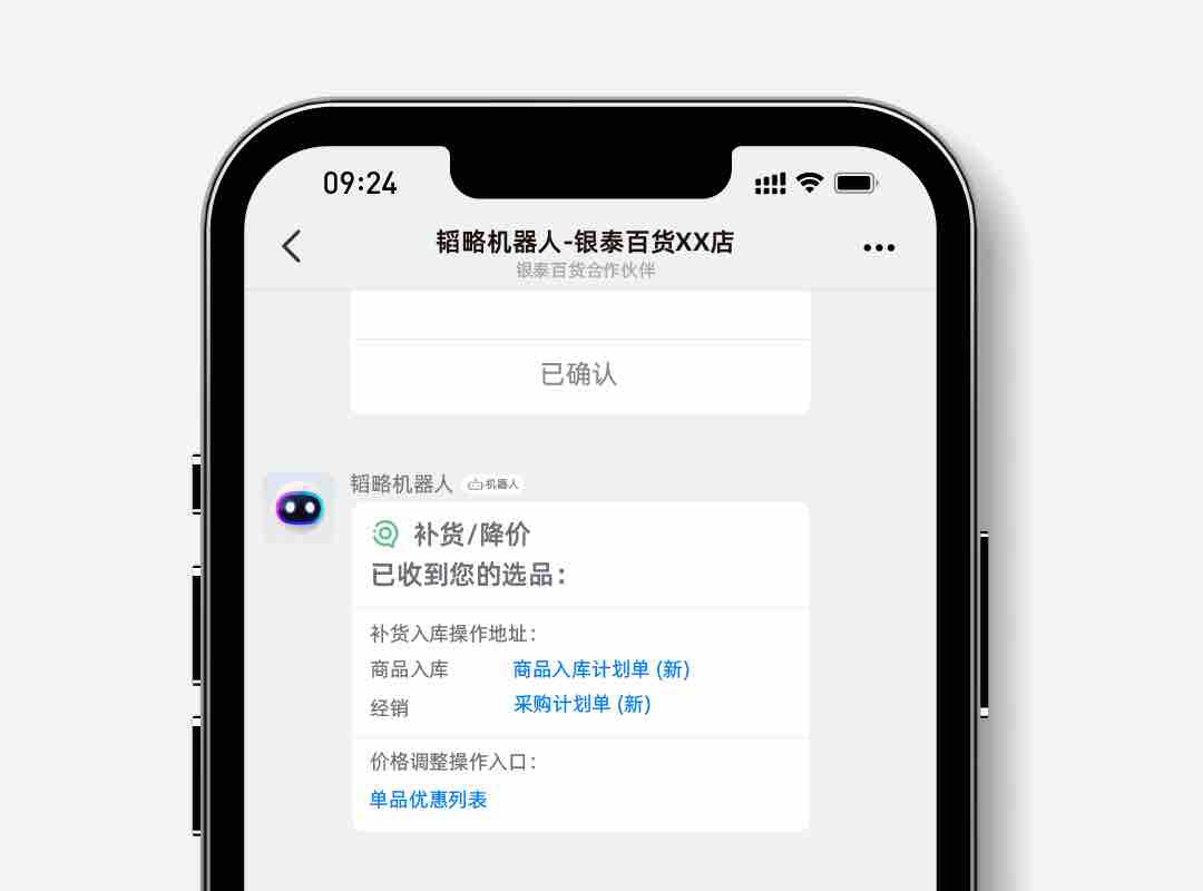 而當我們的人、貨、場、流程都數(shù)字化了之后,這些都可以基于一定的規(guī)則實現(xiàn)自動化運營。早期的“韜略助手”可以理解為我們的初代“數(shù)字員工”,與釘釘合作之后,嫁接了“酷應用”這個產(chǎn)品,我們將此產(chǎn)品升級為“韜略機器人”。