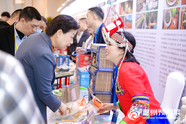 溫州擁有中國生態(tài)大黃魚之鄉(xiāng)、中國鐵皮石斛之鄉(xiāng)等25張國字號農(nóng)業(yè)金名片;甌菜作為中國八大菜系浙菜的四個流派之一,菜品多達250余個,其中列入《中國菜譜》的名菜就有46個。本屆大會同期舉行2023中國(溫州)預制菜產(chǎn)業(yè)專場推介會與預制菜產(chǎn)品展覽展示,百珍堂、藤橋食品、華盛水產(chǎn)、麥豐食品、豐晟食品、溫州生態(tài)大黃魚、豐和海洋、快鹿集團、隆升水產(chǎn)、立辰食品、浙一鮮、溫州杰膳、王大媽食品等80余家本土預制菜骨干企業(yè)云集現(xiàn)場,涵蓋綜合預制菜品牌、肉類預制菜、水產(chǎn)品預制菜、蔬果凈菜、復合調(diào)味料等展品范疇,開展展示、品鑒、推介等活動。各家企業(yè)攜帶最新產(chǎn)品以及大單品亮相,鴨舌、黃魚鲞、鰻鲞、熏雞、肉燕、糯米山藥雞、滋補酒飯、海參燉魚膠等知名溫州預制菜吸引客商不斷佇足,堪稱是一場甌菜的“大盛會”。