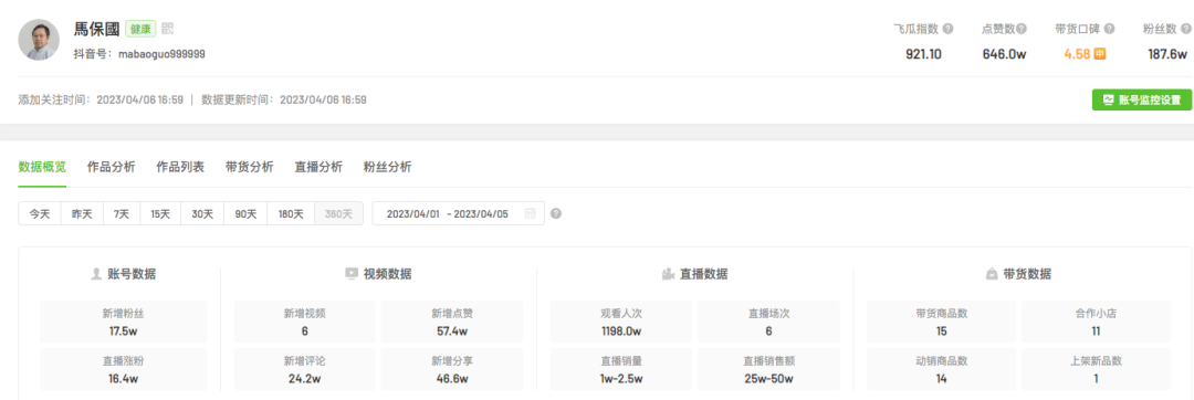大家關(guān)注的小楊哥,在3月份依舊是佛系直播,開播次數(shù)不多,平均五六天一次,業(yè)績2.5億到5億,排名與2月份相同。人家這么佛系,估計(jì)是因?yàn)樽约旱那衅桃曨l做的好,一個(gè)月躺賺幾千萬,所以在直播方面也就不用像東方甄選交個(gè)朋友這種日播17個(gè)小時(shí)了。