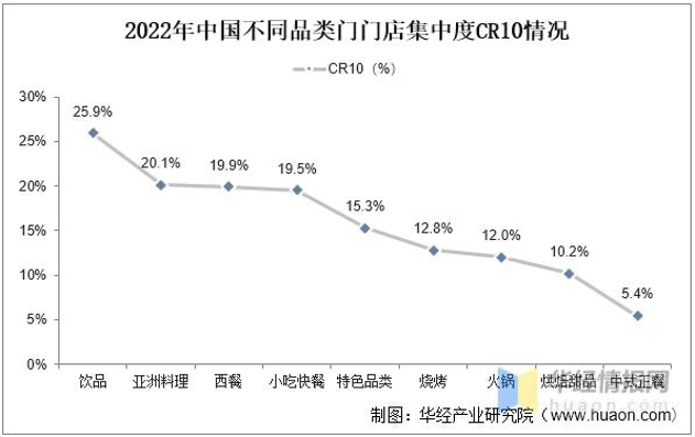 此外,不同品類的行業(yè)集中度也差異甚大。飲品、亞洲料理的CR10都在20%以上。烘焙10.2%,正餐5.4%。