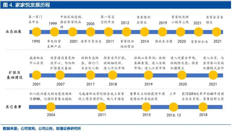 家家悅前身為山東威海糖酒采購(gòu)供應(yīng)站,隸屬于威海市商業(yè)局,自1995年開(kāi)始發(fā)展連鎖經(jīng)營(yíng),同年5月27日,在山東威海開(kāi)出了第一家門店——中心店。1997年糖酒采購(gòu)供應(yīng)站開(kāi)啟改制,1999年開(kāi)始經(jīng)營(yíng)生鮮品類,2001年進(jìn)入煙臺(tái)市開(kāi)啟區(qū)域連鎖之路,并正式創(chuàng)立“家家悅”品牌。