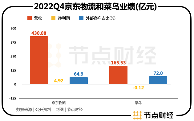目前,菜鳥的業(yè)務(wù)中,72%來自外部客戶。這一點上,略高于京東64.9%的外部客戶占比。