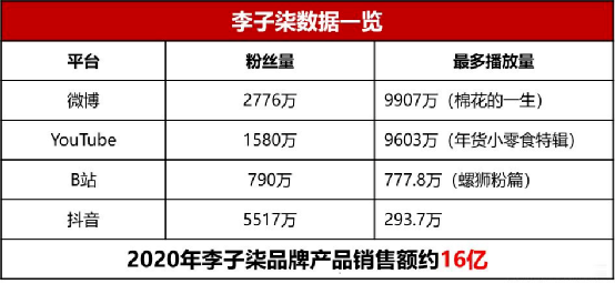 其中,在微念的運營下,李子柒自有品牌的銷售相當成功。數(shù)據(jù)顯示,2020年李子柒品牌銷售額達到16億元,同比增長300%,光是李子柒螺螄粉一年銷售額就達到了5億元。