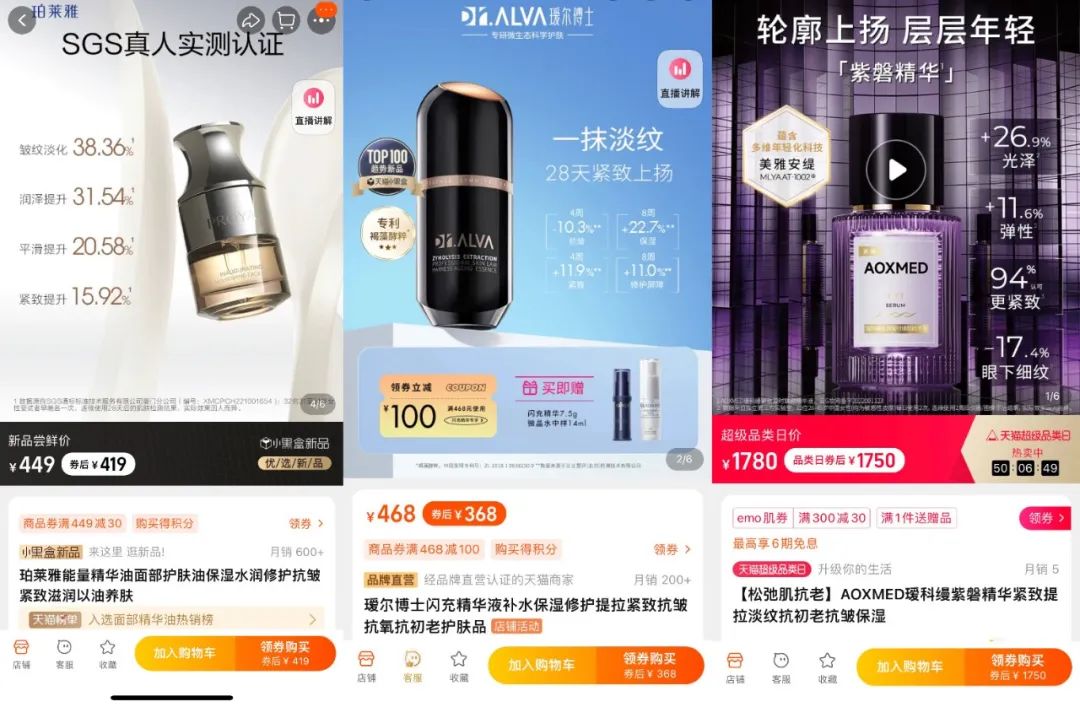 護(hù)膚品牌的大單品一般是指剛需、跨周期、高復(fù)購、高毛利的產(chǎn)品,主打抗衰、修護(hù)等強(qiáng)功效,常以精華、面霜品類出現(xiàn),對客單價(jià)和復(fù)購率的拉動作用明顯,進(jìn)而帶動銷售額和毛利率的增長。