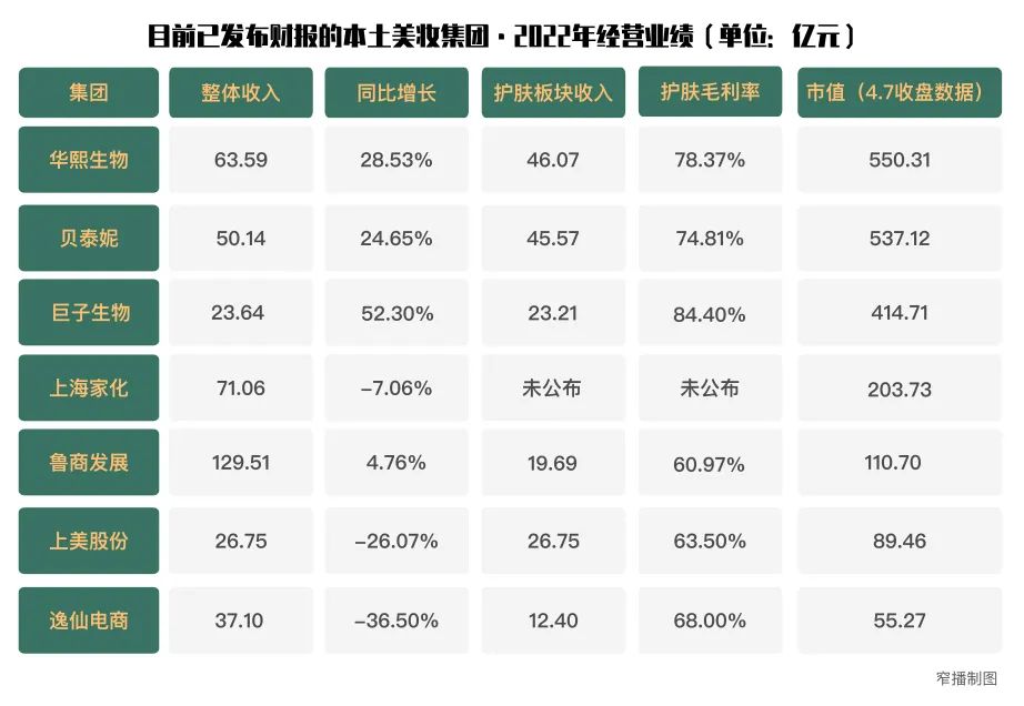 《窄播》參照華熙生物、貝泰妮等多家國貨美妝集團(tuán)發(fā)布的2022年年報(bào),結(jié)合各家過去一年的品牌動作,從產(chǎn)品、品牌和渠道維度,對國貨美妝集團(tuán)的現(xiàn)狀、競爭格局和發(fā)展方向進(jìn)行了梳理。