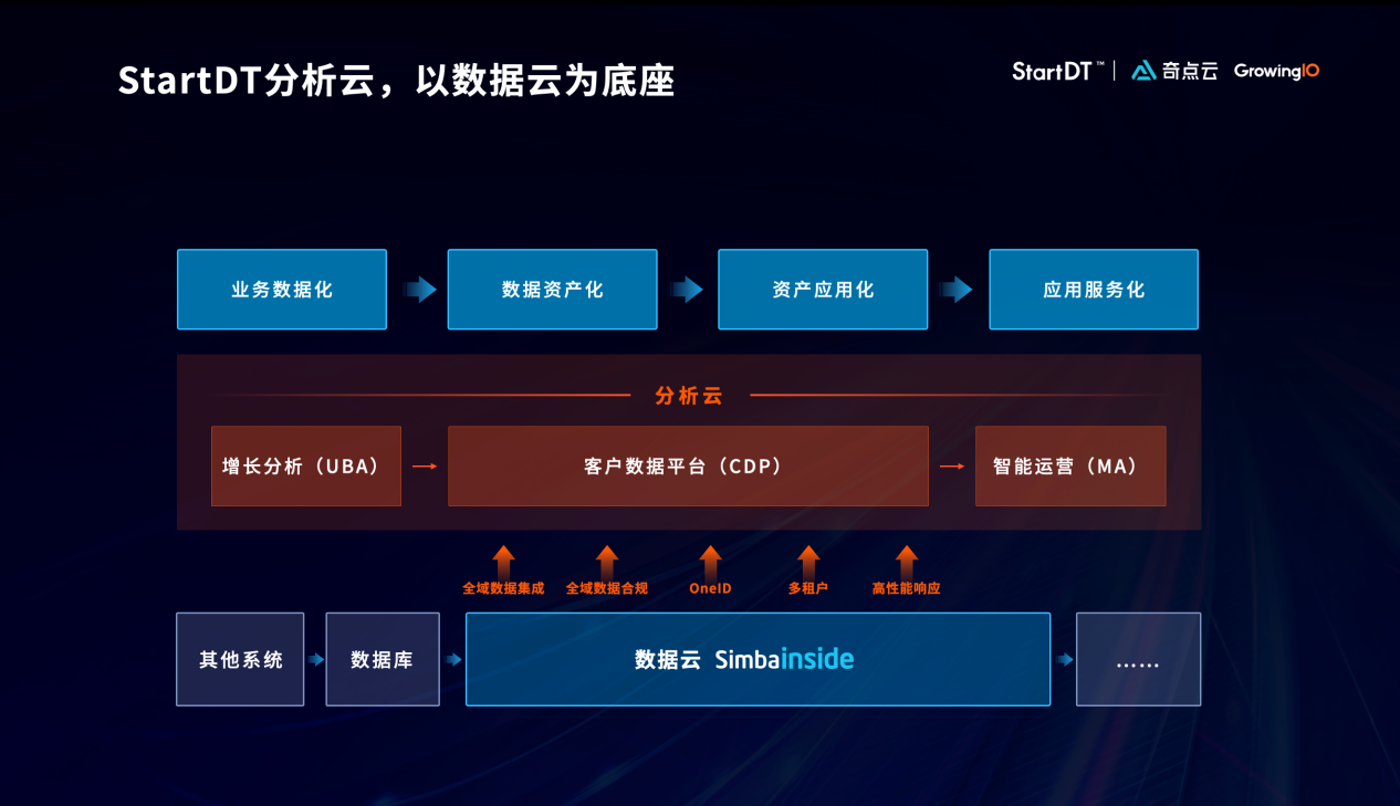 分析云則負(fù)責(zé)實(shí)現(xiàn)數(shù)據(jù)與業(yè)務(wù)的連接,滿足客戶在多樣場景下的數(shù)據(jù)應(yīng)用需求,核心產(chǎn)品包括增長分析(UBA)、客戶數(shù)據(jù)平臺(CDP)以及智能運(yùn)營(MA營銷自動化)。