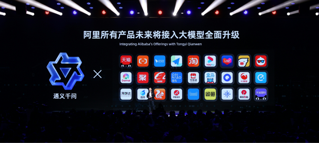 4月11日,阿里云CEO張勇和阿里云智能CTO周靖人攜帶這場(chǎng)戰(zhàn)爭(zhēng)的階段性成果——通義千問亮相一年一度的阿里云峰會(huì)。