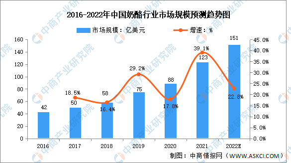 數(shù)據(jù)顯示,我國奶酪行業(yè)市場規(guī)模由2016年的42.11億元增長至2021年的123億元,復(fù)合年均增長率達23.9%,預(yù)計2022年我國奶酪行業(yè)市場規(guī)模將達151億元。由此計算,2022年妙可藍多奶酪產(chǎn)品市占率約為26%。