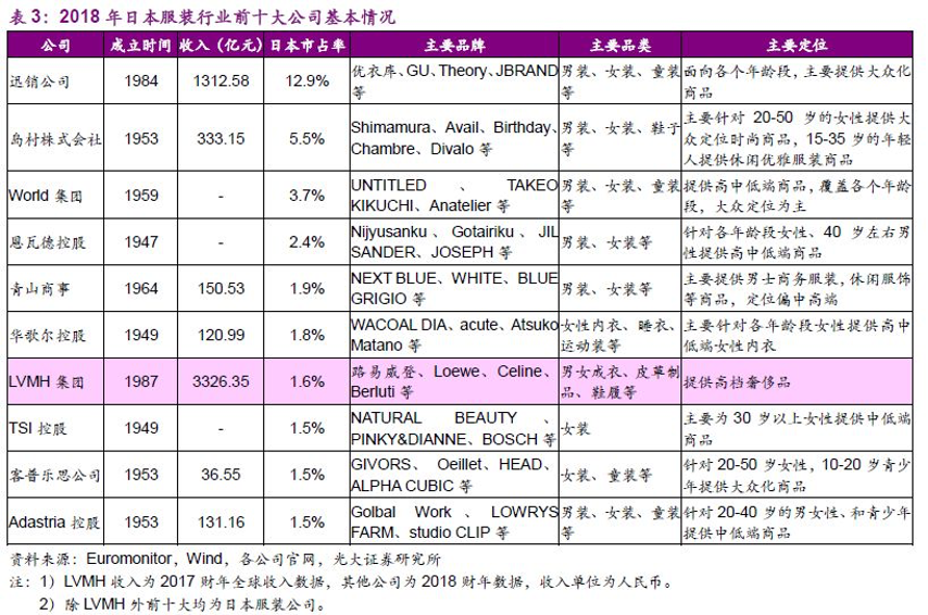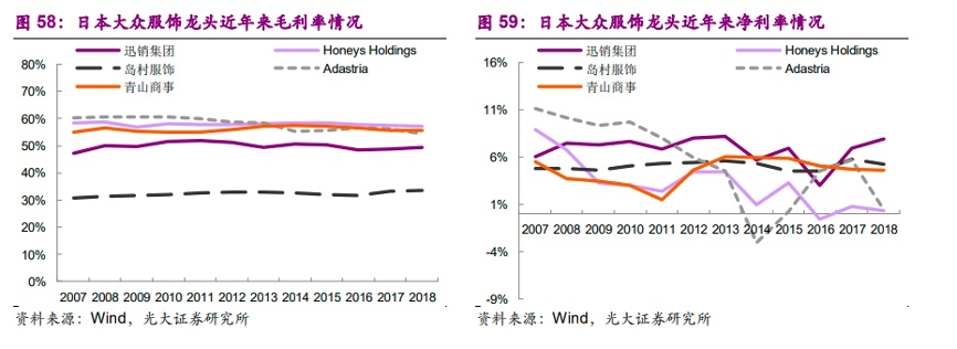 *從定位看,當(dāng)前日本大多數(shù)龍頭公司以大眾服裝為主。高性價比、低品牌溢價成為趨勢。