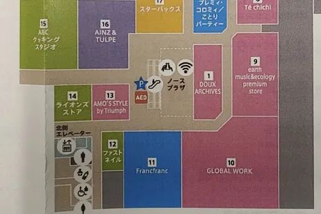 而在大部分導(dǎo)視圖上,指引“我的位置”的標(biāo)記處,日本商場(chǎng)都會(huì)加一個(gè)小箭頭,表明你現(xiàn)在的目視方向。