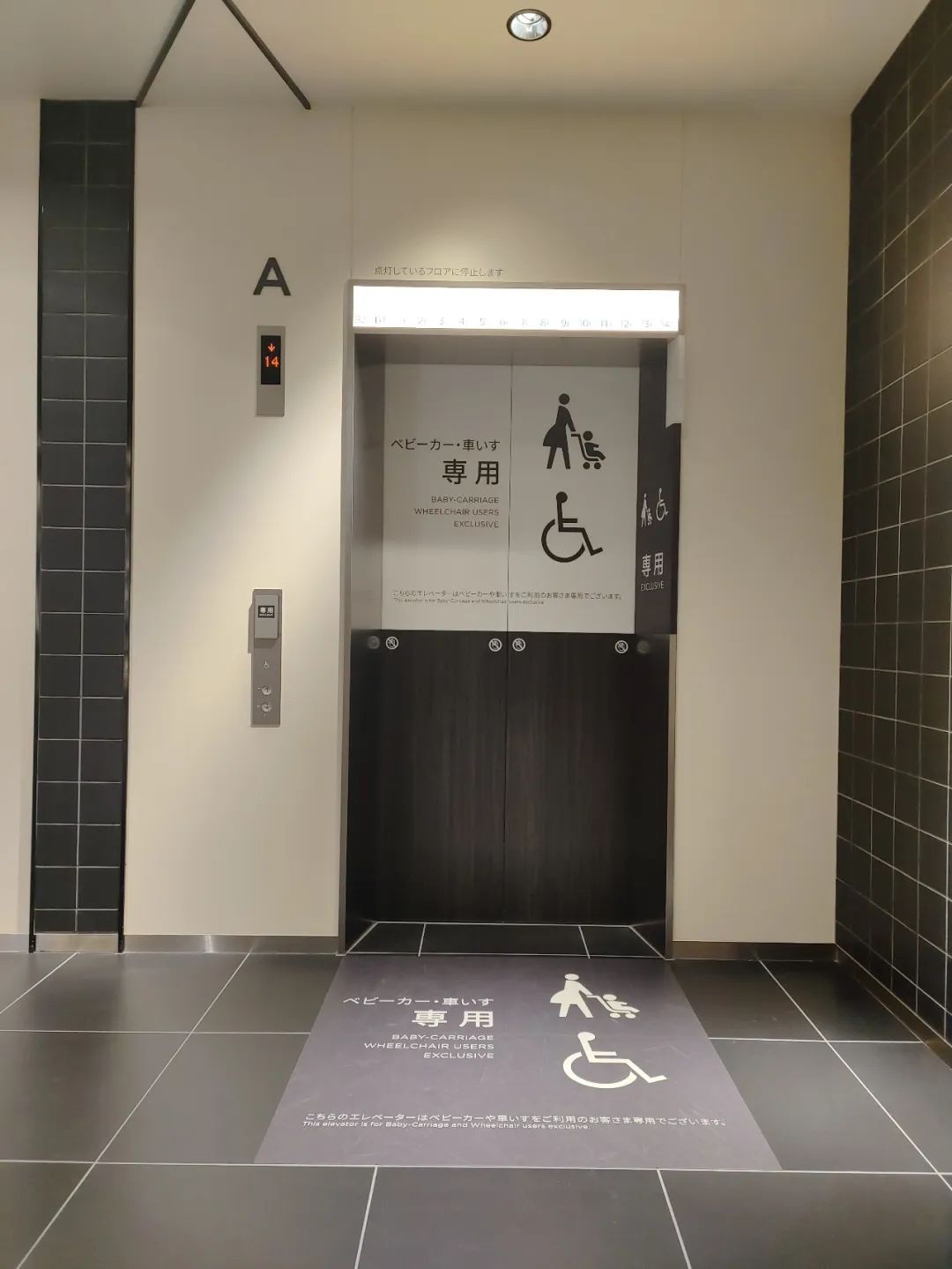 該類(lèi)電梯的按鈕會(huì)低于普通直梯,方便坐在輪椅上的消費(fèi)者觸摸。根據(jù)我現(xiàn)場(chǎng)觀察來(lái)看,即使電梯非常擁擠緩慢,顧客們?nèi)詴?huì)自覺(jué)避開(kāi)專(zhuān)用電梯,選擇其它電梯通行。