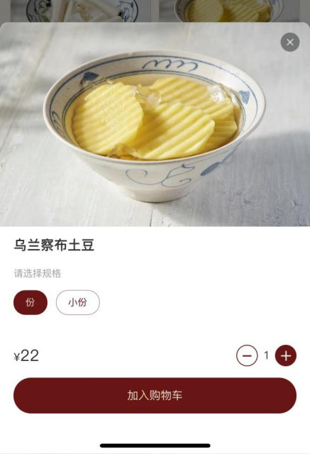 此外,筆者近日在巴奴火鍋點餐小程序上觀察到,雖然“富硒土豆”下架,但目前在售的烏蘭察布土豆價格也并沒有下降,顯示一份為22元,小份也要11元,甚至還要高于公告聲明的小份9元。