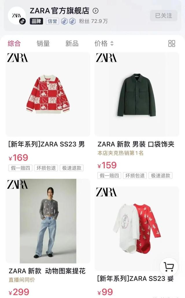 今年年初,ZARA開(kāi)始轉(zhuǎn)戰(zhàn)抖音直播。首播當(dāng)天,ZARA直播間專(zhuān)門(mén)上線了部分其他渠道尚未上架的新品以及2023中國(guó)新年系列。