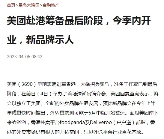 但在介紹會中美團(tuán)表示,對于駕車送餐的送遞員,行車證不能在5月15日之前到期,因此外界猜測,美團(tuán)可能在5月中正式開始在本港營運。